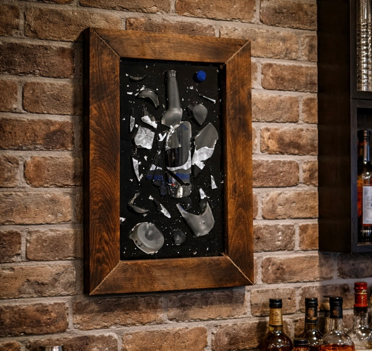 Framed Jägermeister & RedBull Smashed Bottle Art