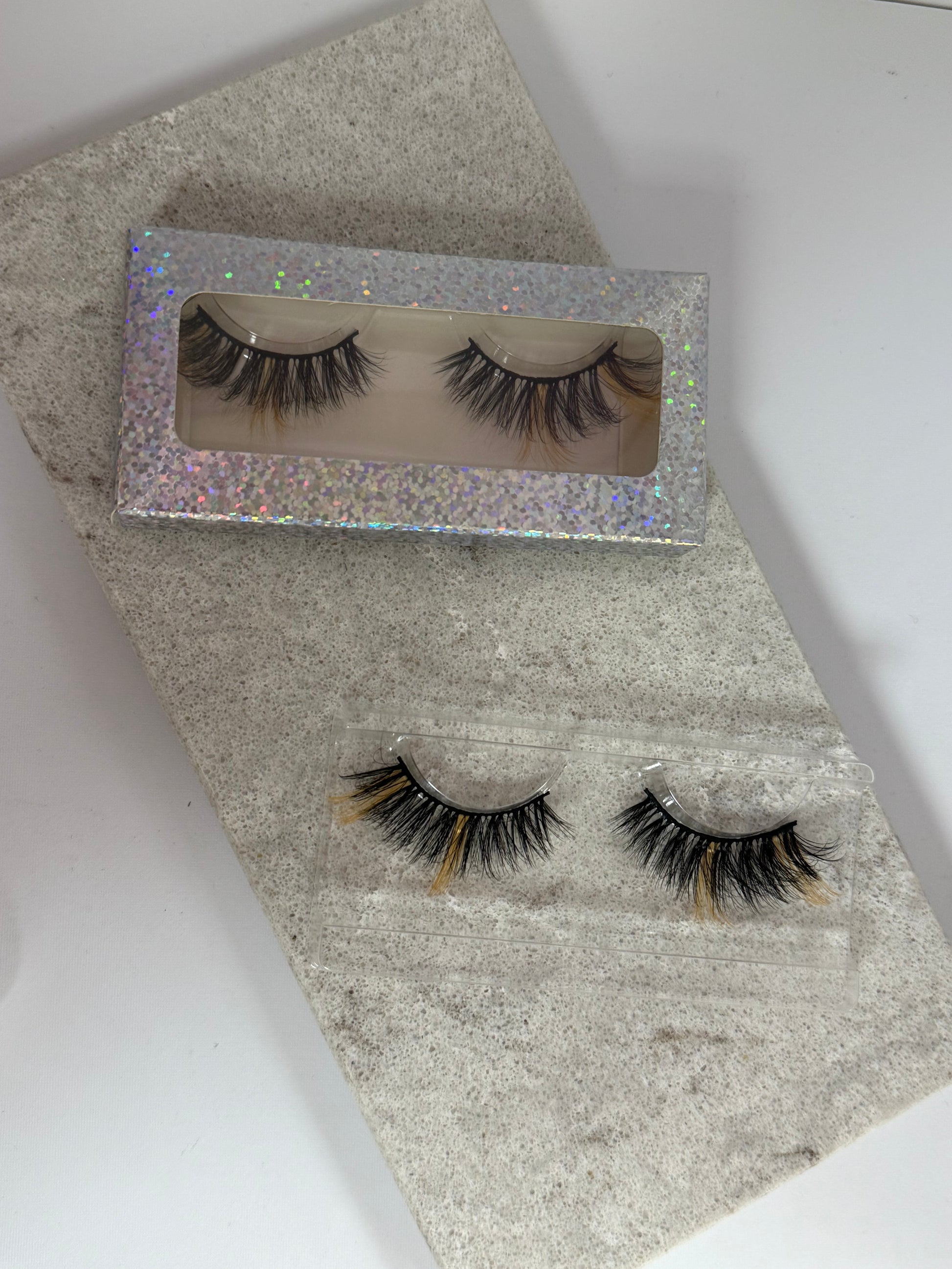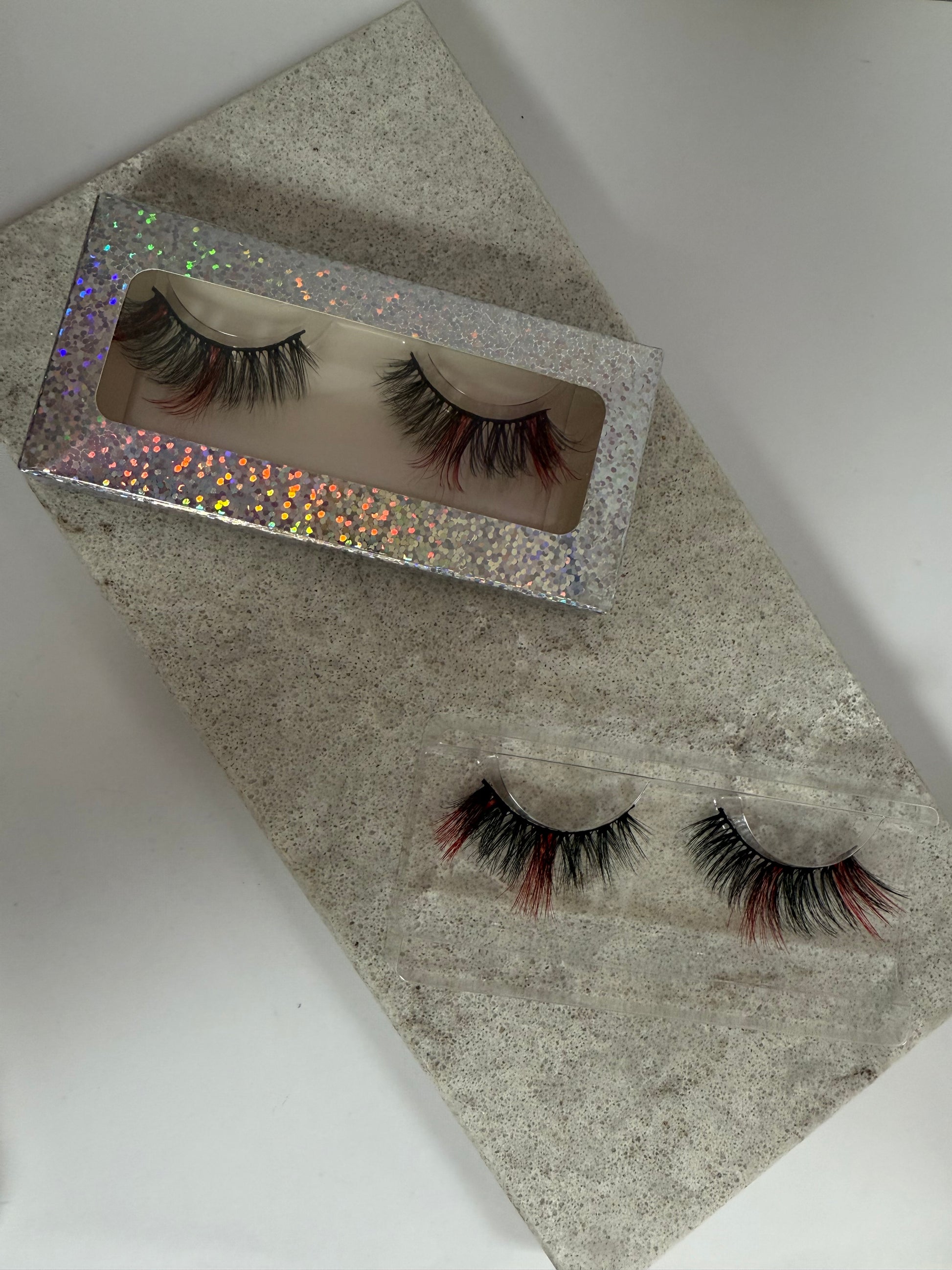 Enhance your look with our Coloured Eyelashes. Add a pop of colour to your lashes with our unique design featuring colour in the middle and on the end. Perfect for coordinating with outfits and making a statement. Shop now and elevate your style with our gorgeous coloured eyelashes.
