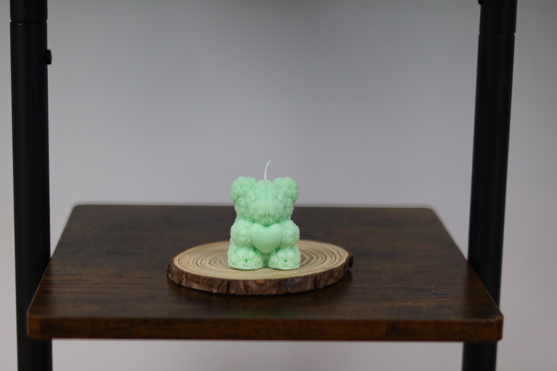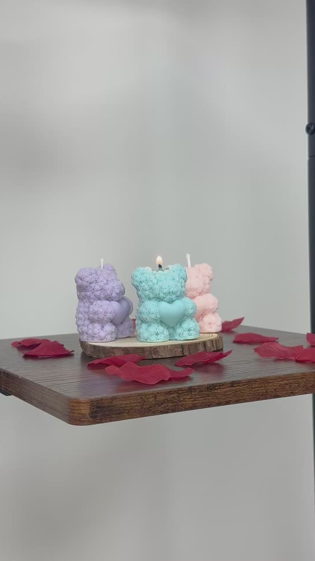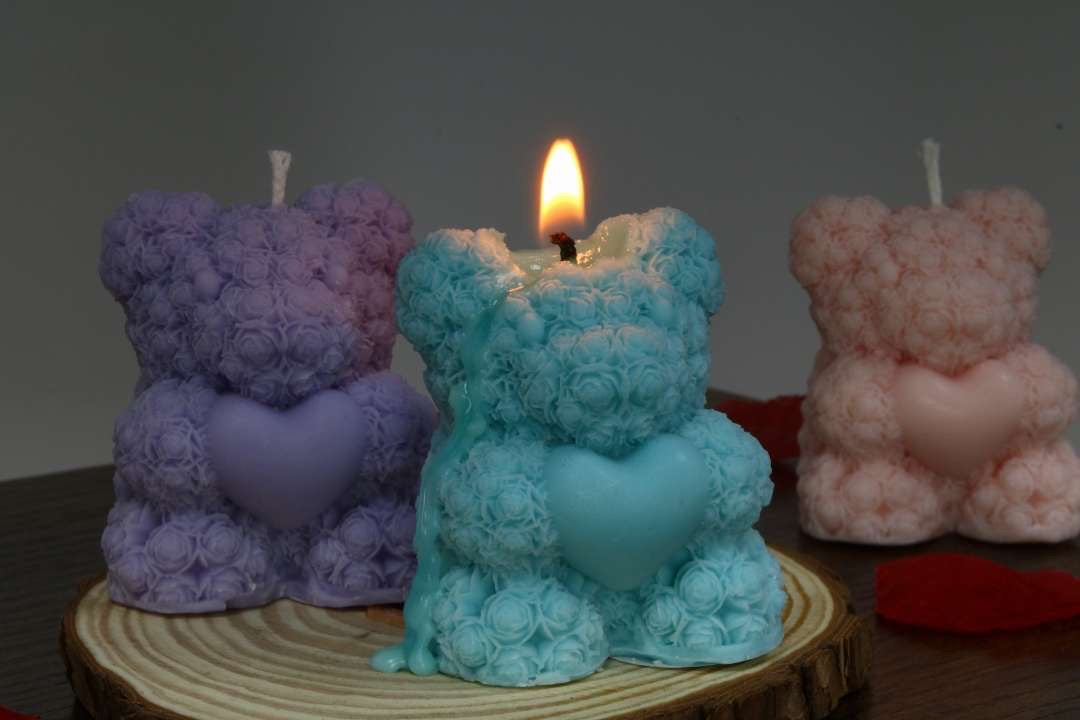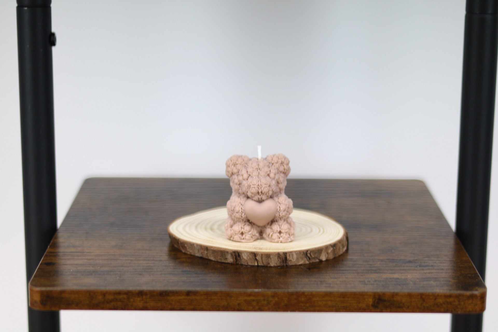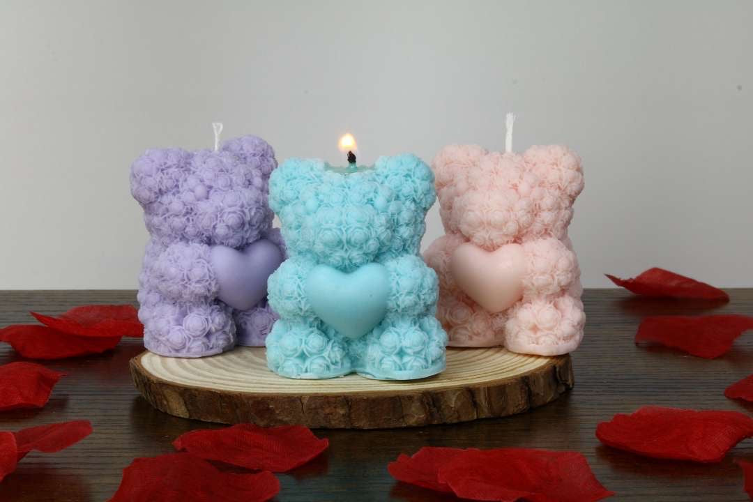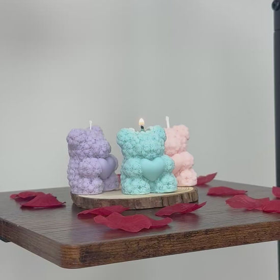 Hand Poured Rose Bear Holding Heart - a cute gift for someone you love!