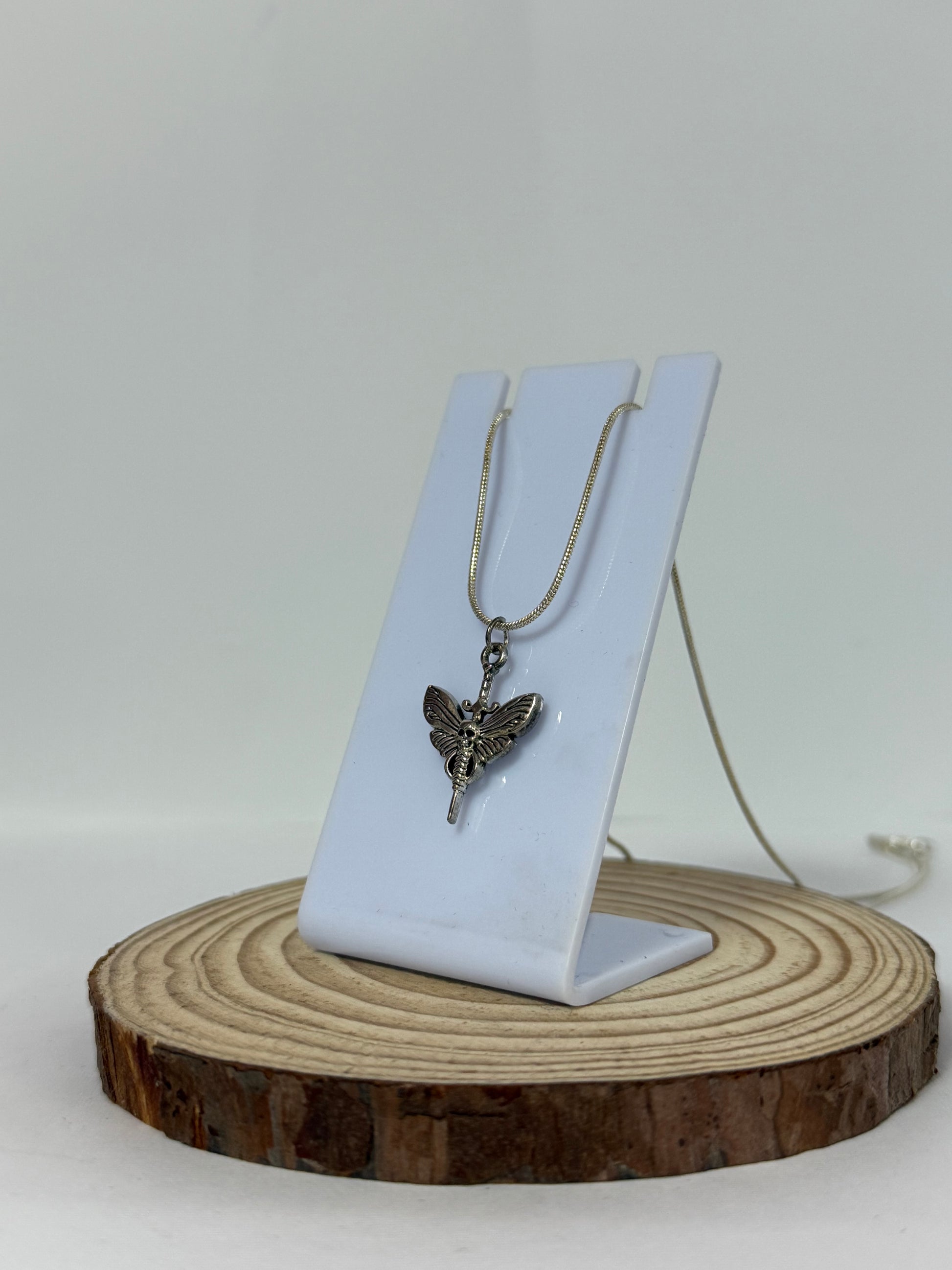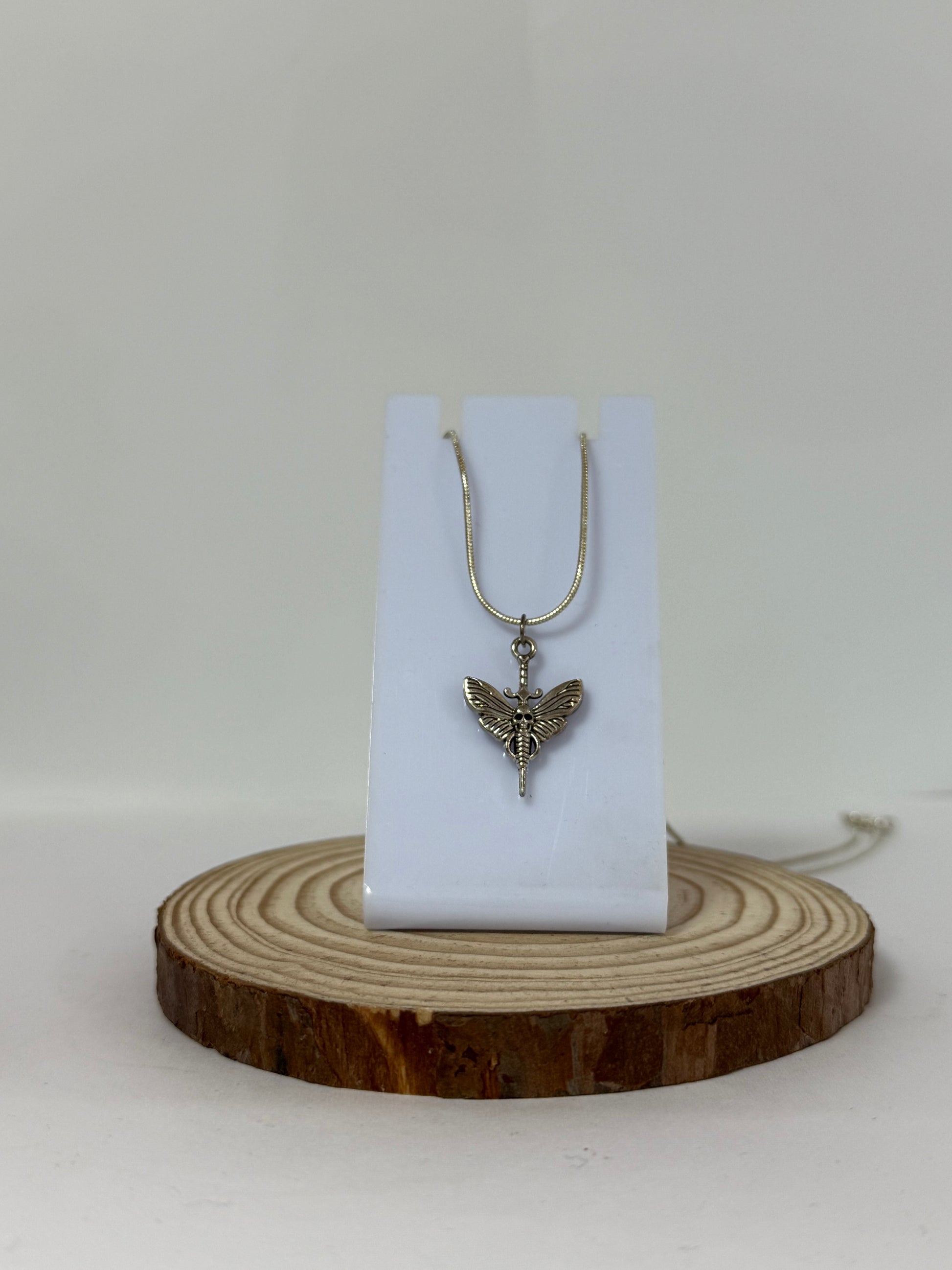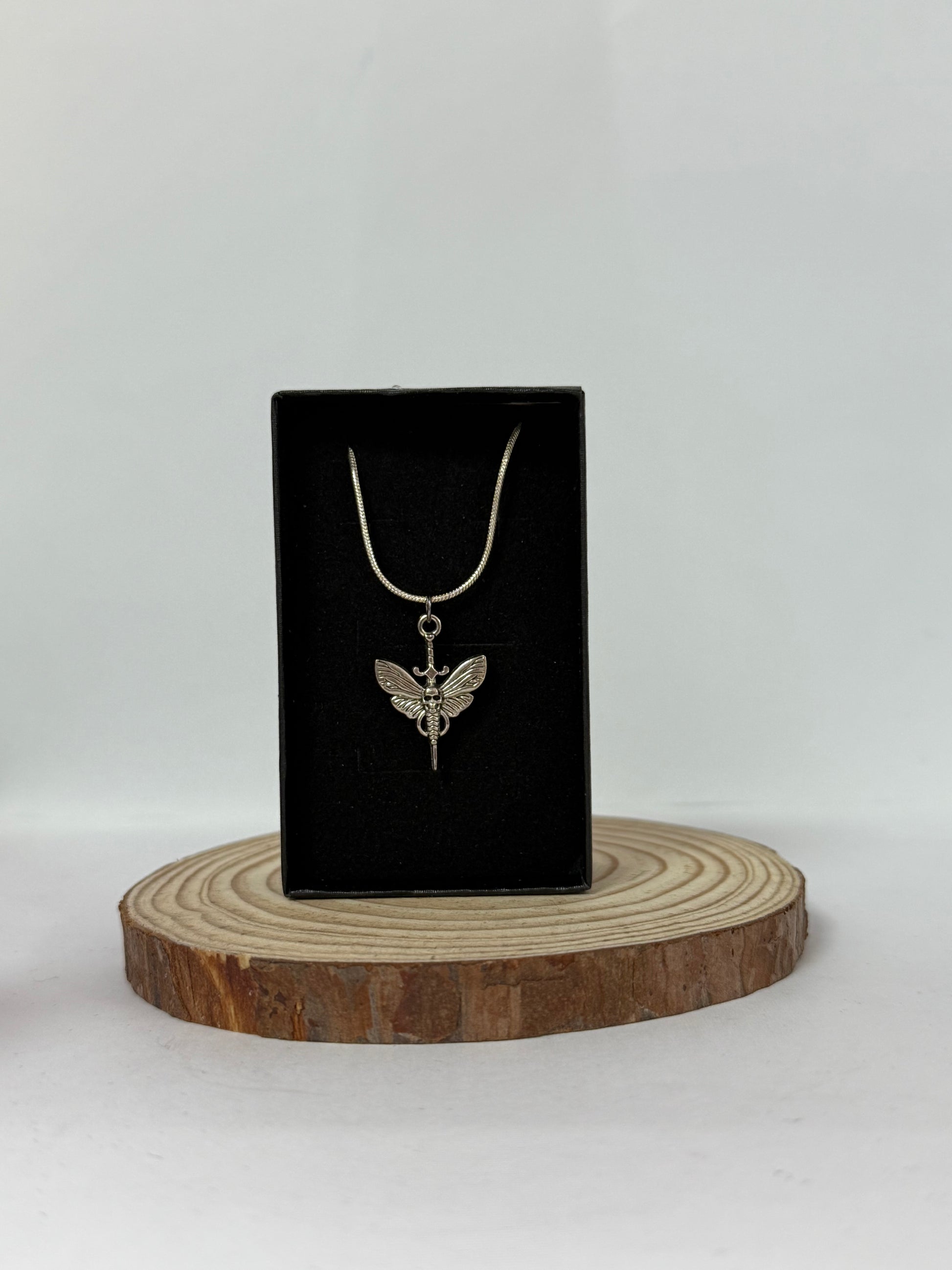 Shop Our Gothic Moth Skull Sword Silver Necklace.