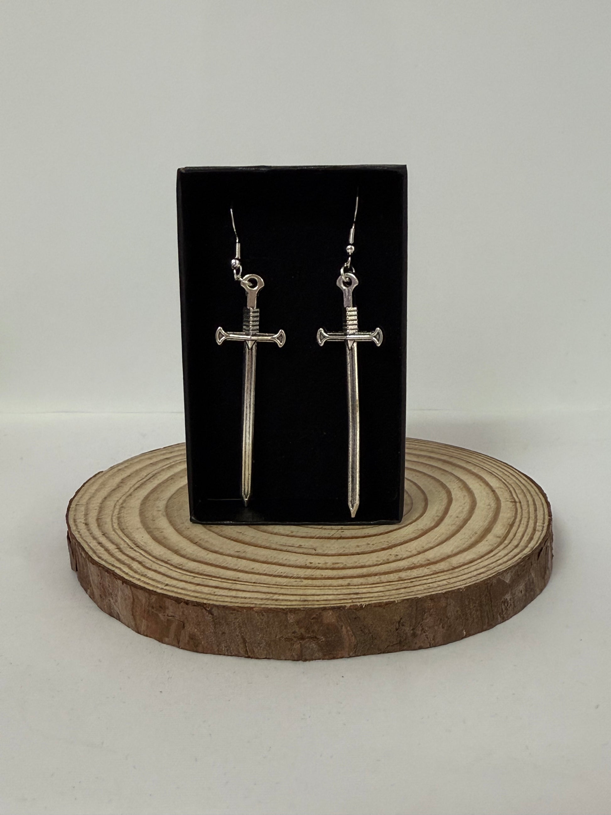 Featuring a striking design of a Sword, these bold earrings are guaranteed to make a statement.